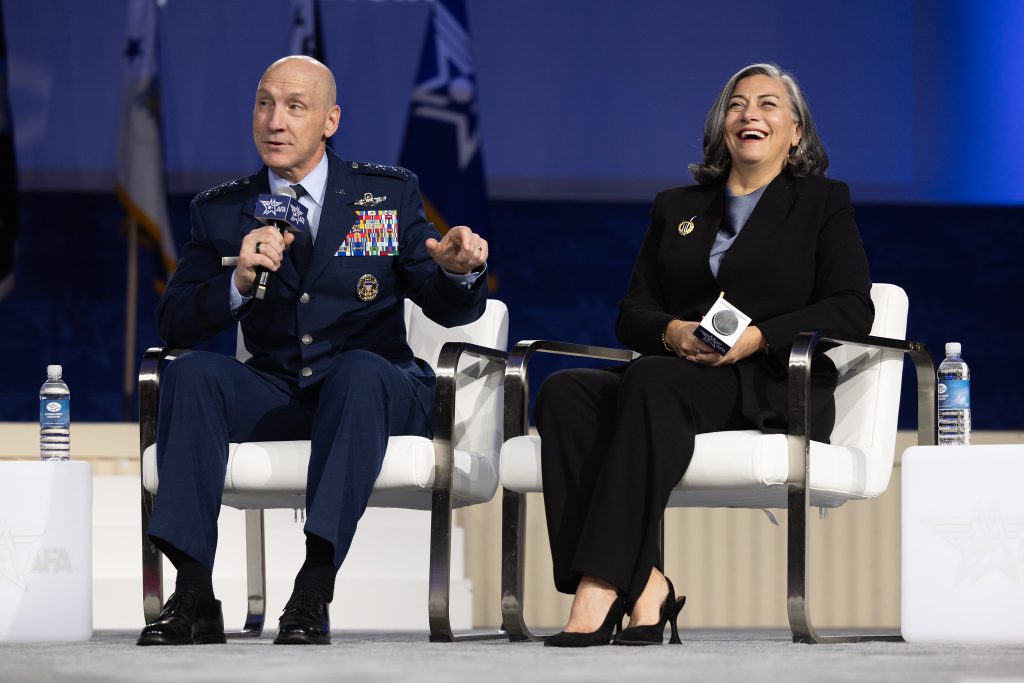On the third day of the conference, attendees heard about the military family’s challenges from the very top: Chief of Staff of the Air Force Gen. David W. Allvin and his wife Gina; and Chief of Space Operations Gen. B. Chance Saltzman and his wife Jennifer. The couples discussed how their personal challenges as a family have evolved over the years, through duty assignments, children growing up, promotions, and personal battles—issues that every military family understands well.