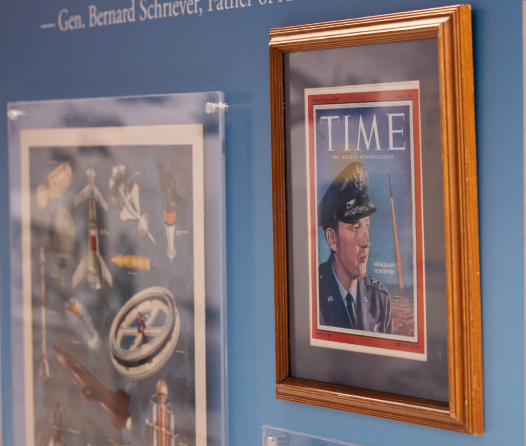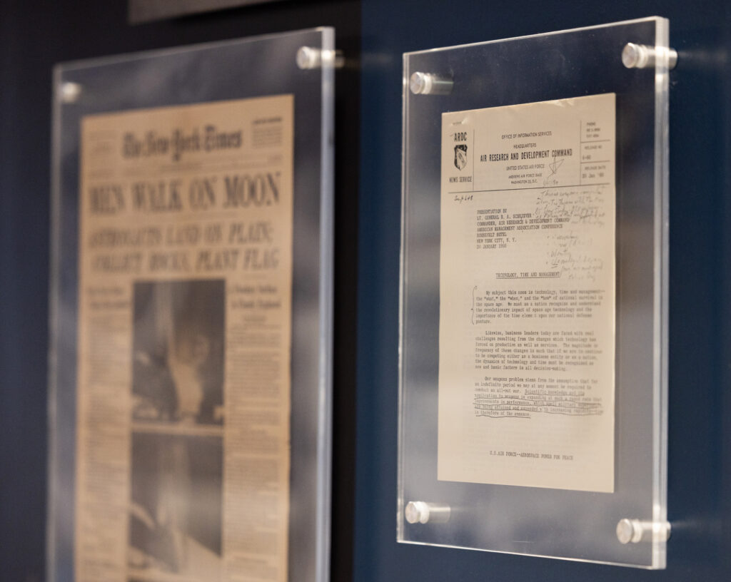 Additional artifacts on display were loaned by the family of Gen. Bernard Schriever, further anchoring the space timeline in the legacy of the leader widely regarded as the father of the U.S. space and missile program. Combined, these artifacts, dozens of images, and quotations from air and space leaders yields a narrative structure and set of high impact visuals that reflect the evolution of airpower and spacepower over time.