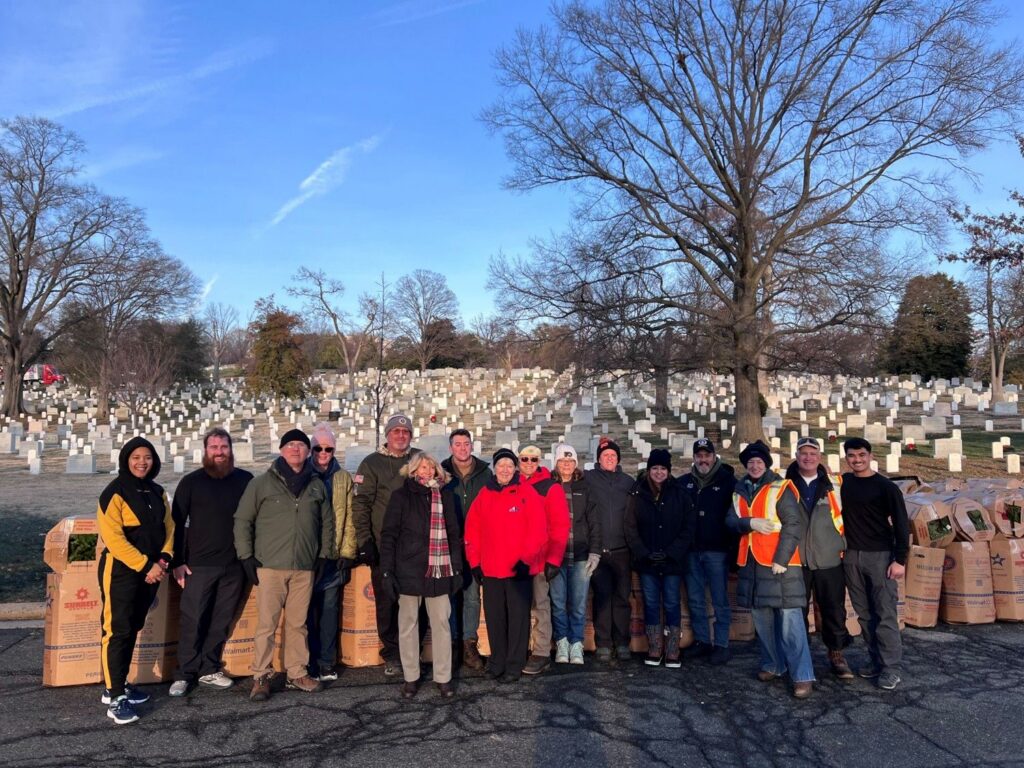 On December 13, 2025, 14 volunteers from AFA’s Gabriel Chapter in Centreville, Va., continued its proud, annual holiday tradition of supporting Wreaths Across America (WAA) at Arlington National Cemetery (ANC). Since 2015, chapter volunteers have manned a 60-foot semi-truck helping to distribute wreaths to more than 30,000 volunteers who place them at 265,000 gravesites as a living memorial to remember our fallen, honor their sacrifice, and teach the public about military service.