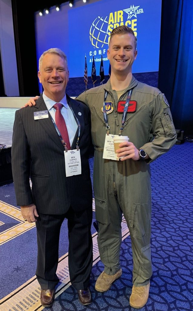 Like their military service, the Coffeys’ dedication to AFA is also multigenerational. Both Whiz and Irish are Life Members — a membership Ben gifted to his son upon his commissioning. Their shared commitment illustrates the powerful role AFA plays in uniting generations of Airmen and Guardians, strengthening ties across the Total Force, and preserving the heritage of service that defines the Air and Space Forces.