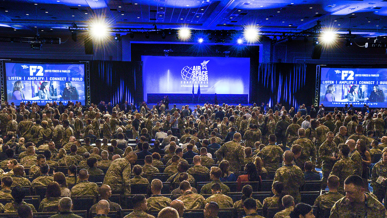 Distinguished signage and logo placement at AFA's Air, Space & Cyber Conference and Warfare Symposium.