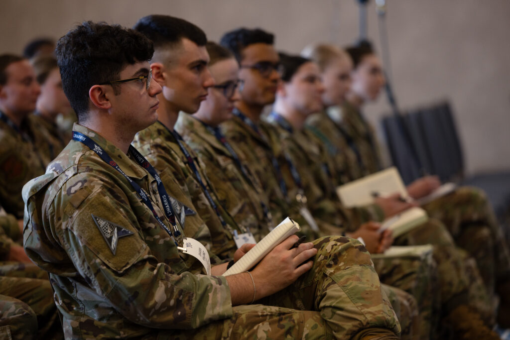 AFA’s Doolittle Leadership Center’s mission is “Building Better Leaders.” In the spirit of AFA’s founding President Gen. Jimmy Doolittle, the DLC delivers leadership-training courses, workshops, and resources to Air Force, Space Force, and defense industry leaders around the world. Using a “Lead, Develop, Care” model, the DLC equips cadets, enlisted leaders, officers, and industry professionals with a leadership framework to improve organizational, operational, and individual success. The DLC also organizes engagement series aimed at connecting senior military leaders to the next generation of leaders.