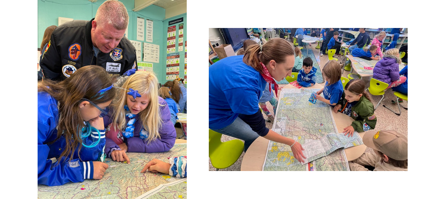 - Navigation lessons: Pilots Hannah Rust and Brian Tucker taught students to read sectional charts, while air traffic controller Matthew Zobel explained how aircraft navigate safely through busy airspace and inclement weather.