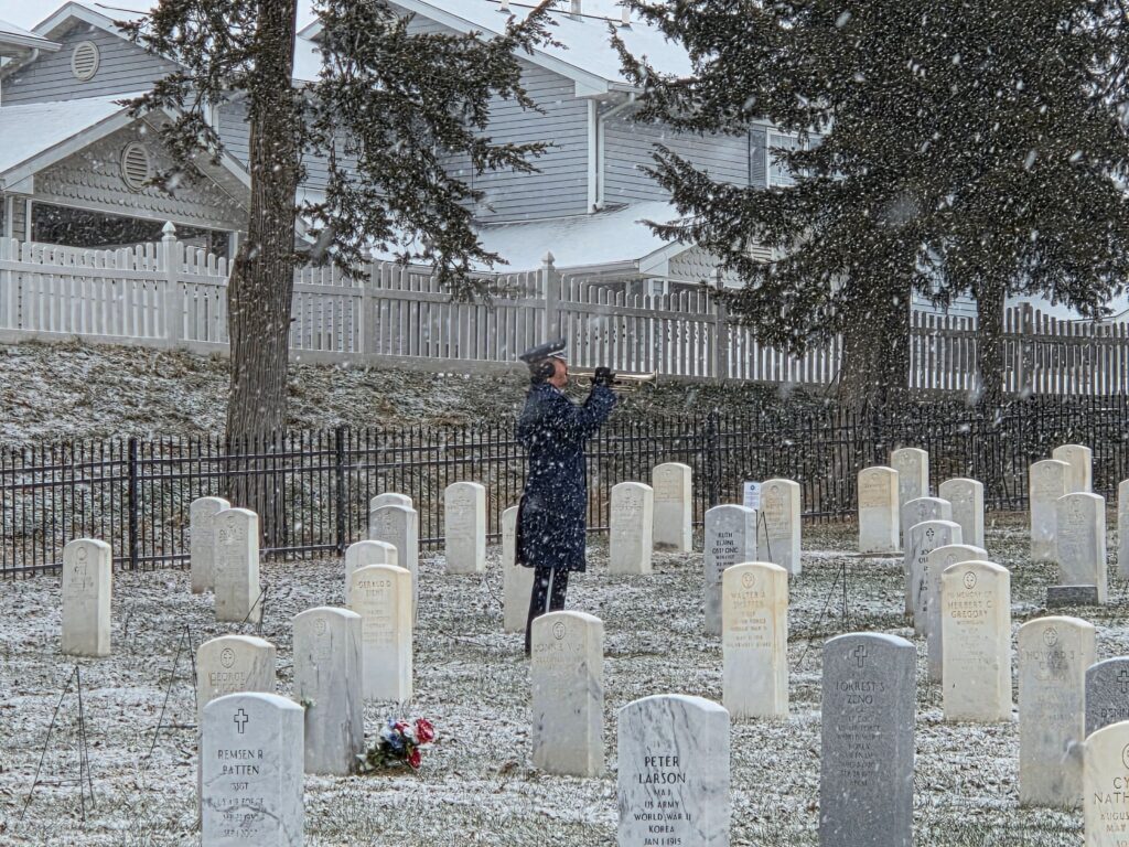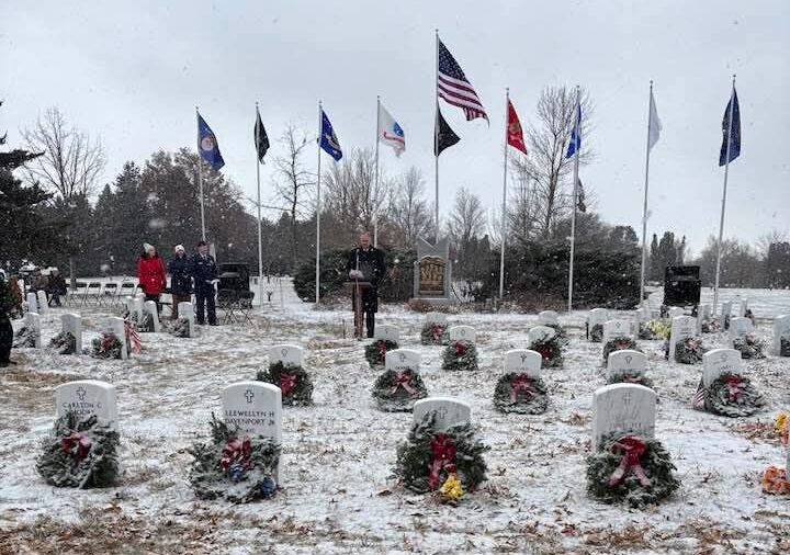 This year’s wreath-laying event was held December 13, 2025. Honor Guards, buglers, service representatives, AFA members, and many members of the public assembled to place wreaths at the graves. Participants were instructed how to reverently place the wreath and to take a moment to read and speak the name of the person buried to remember them.